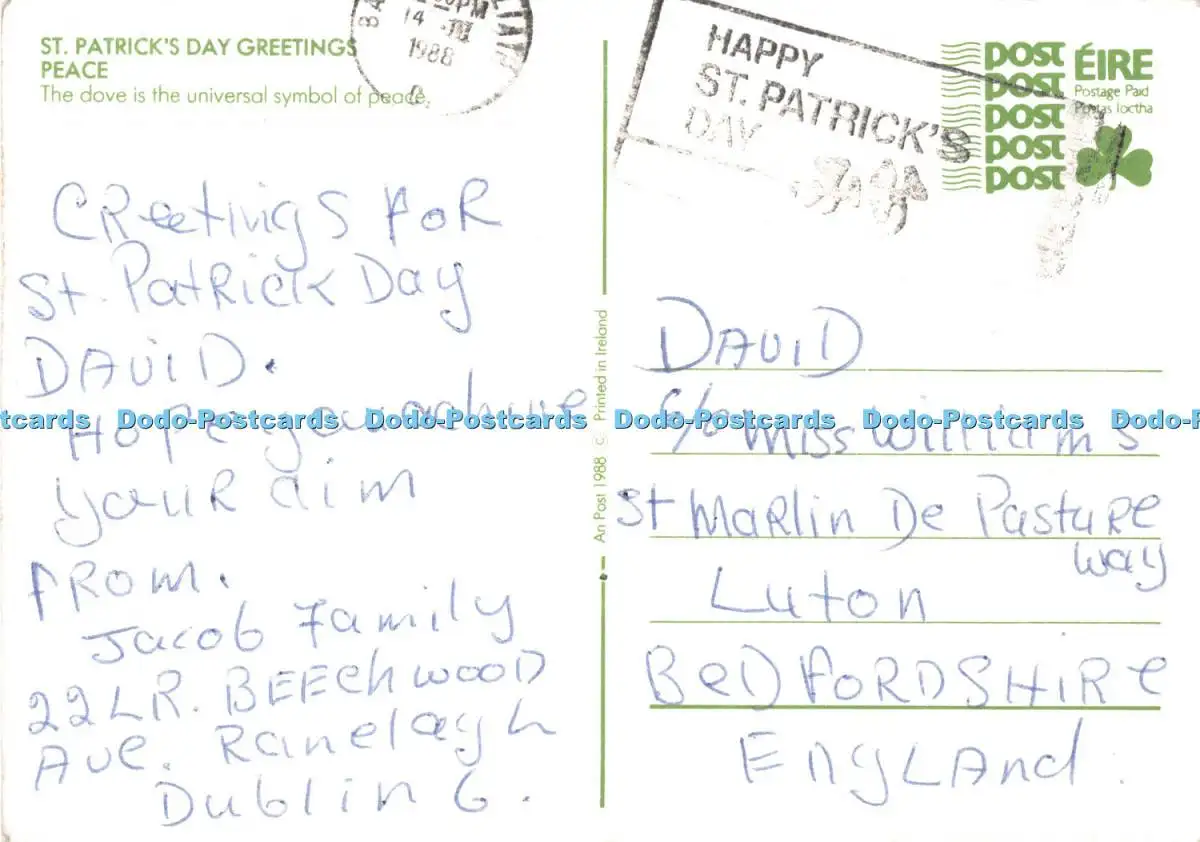 D132032 Frieden St Patrick Day Grüße Die Taube ist das universelle Symbol des Friedens