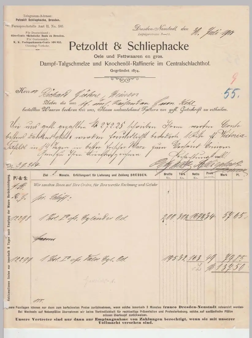- (D170) Rechnung Fa. Petzoldt & Schliephacke, Dresden Neustadt, 1907