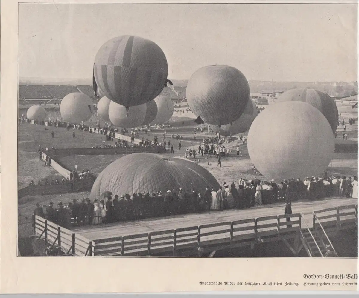 (D563) Panoramabild Druck Gordon-Bennett Ballonfahrt Berlin um 1910