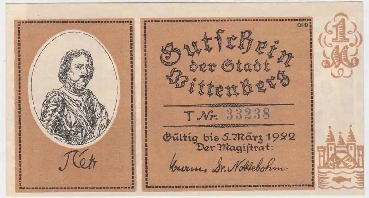 (D912) Notgeld der Stadt Wittenberg, 1 Mark 1922