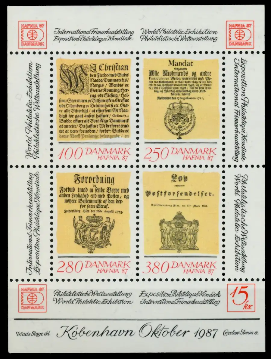 Blockausgabe zur HAFNIA 1987 (MichelNr.: 830, 831, 832, 833)