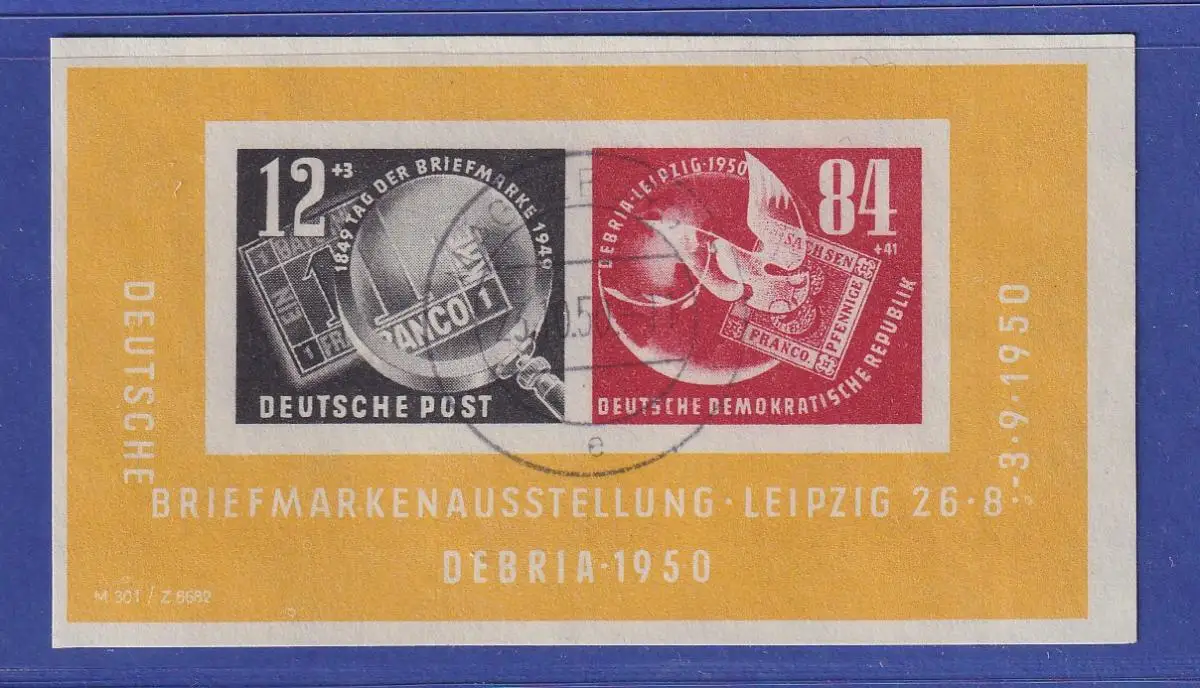 DDR 1950 Briefmarkenausstellung DEBRIA Mi.-Nr. Block 7 gestempelt MAGDEBURG