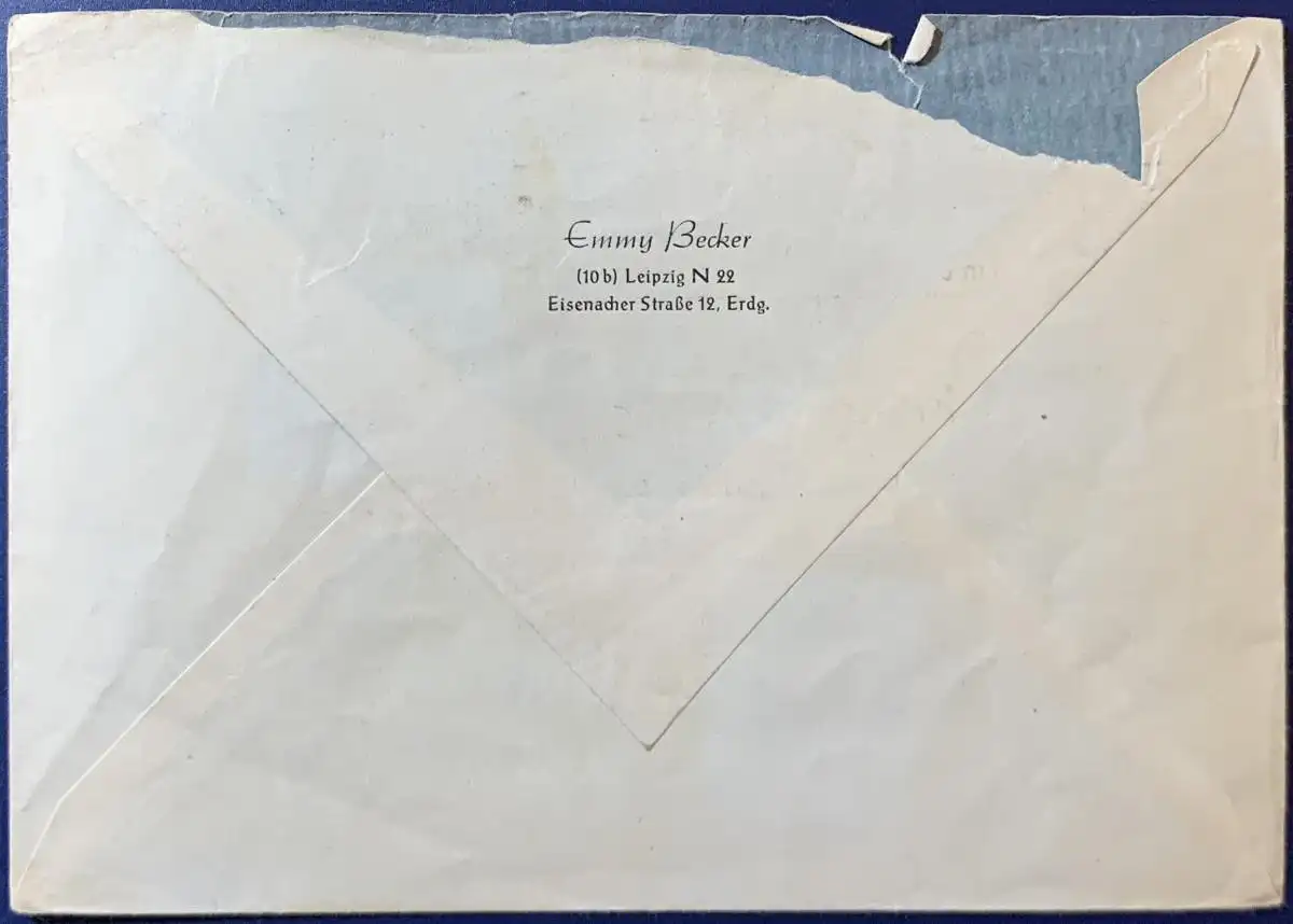 Bedarfsbrief, frankiert mit Mi.Nr. 266 + 2x SBZ Mi.Nr. 213 (senkrechtes Paar), gelaufen mit Poststempel vom 22.12.1950 von Leipzig nach Mosbach/Baden.