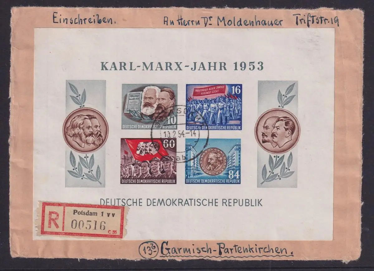 DDR 1953 Karl-Marx-Block Mi.-Nr. Block 9 B auf Briefstück