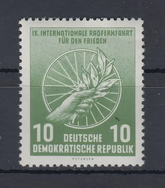 DDR 1956 Radfernfahrt 10Pfg. bessere Farbe dunkelolivgrün Mi.-Nr. 321YIb **