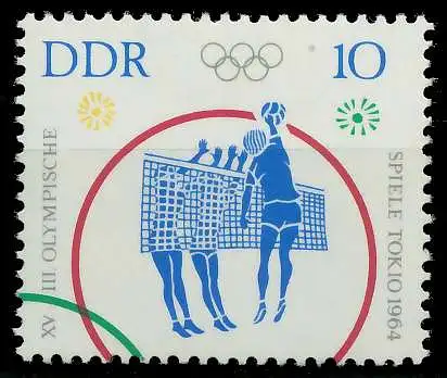 10 Pfg Wert aus der Zusammendruck-Ausgabe Olympische Sommerspiele 1964 in Tokio - Volleyball
