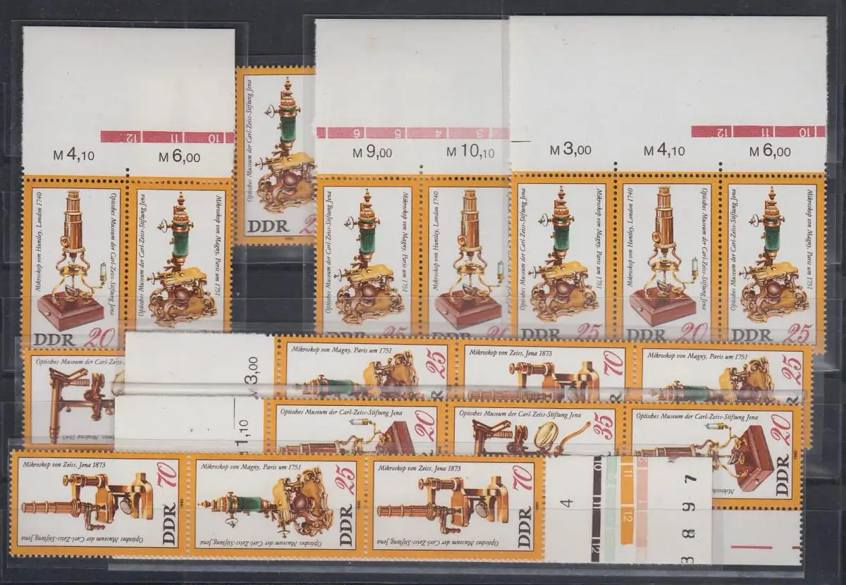 DDR 1980 Mikroskope Mi.-Nr. 2534-2537 kpl. Garnitur 16 Zusammendrucke **