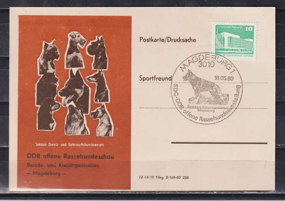 DDR Sonderkarte 1980 " offene Rassehundeschau - Magdeburg- " mit gleichem SSt auf MiNo. 2484