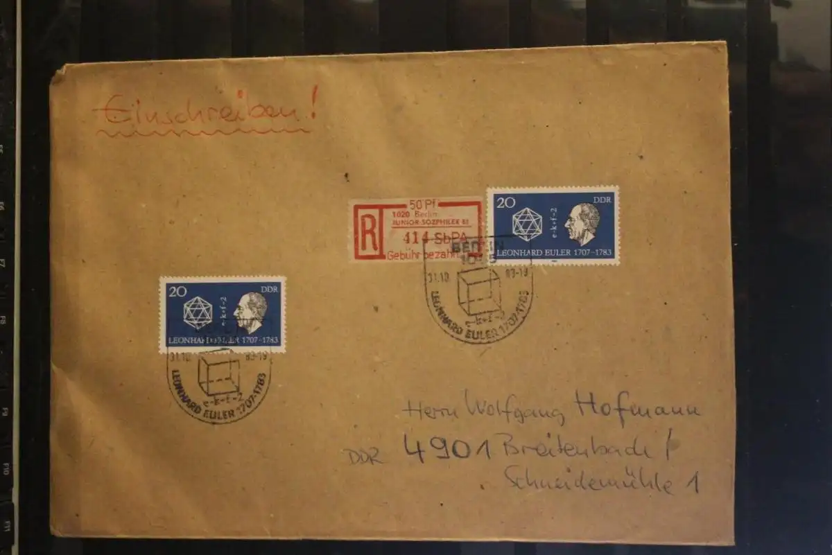 DDR 1983; Einschreibezettel Junior Sozphilex 83; 1020 Berlin, zugleich FDC Euler, MiNr. 2825