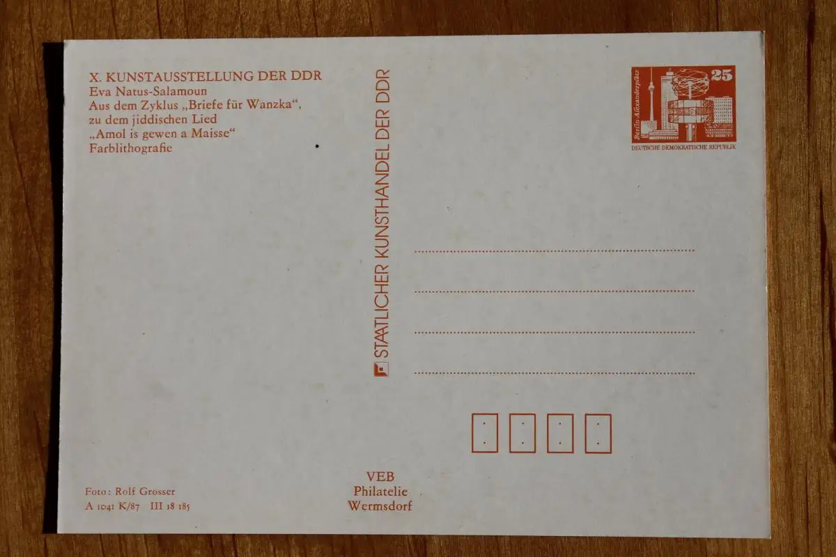 X. Kunstausstellung der DDR: Eva Natus-Salamoun:Aus dem Zyklus "Briefe für Wanzka"; Farblithografie