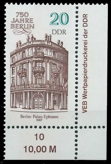 DDR 1987 Nr 3071 postfrisch ECKE-URE 0D2AFE