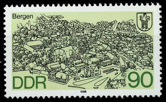 90 Pfg Wert aus der Ausgabe Städte in der DDR - Bergen