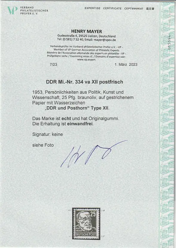 Die Erhaltung ist einwandfrei s. Abbildung und Attest Mayer VP. Michelwert 1.000,00 €