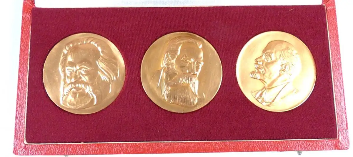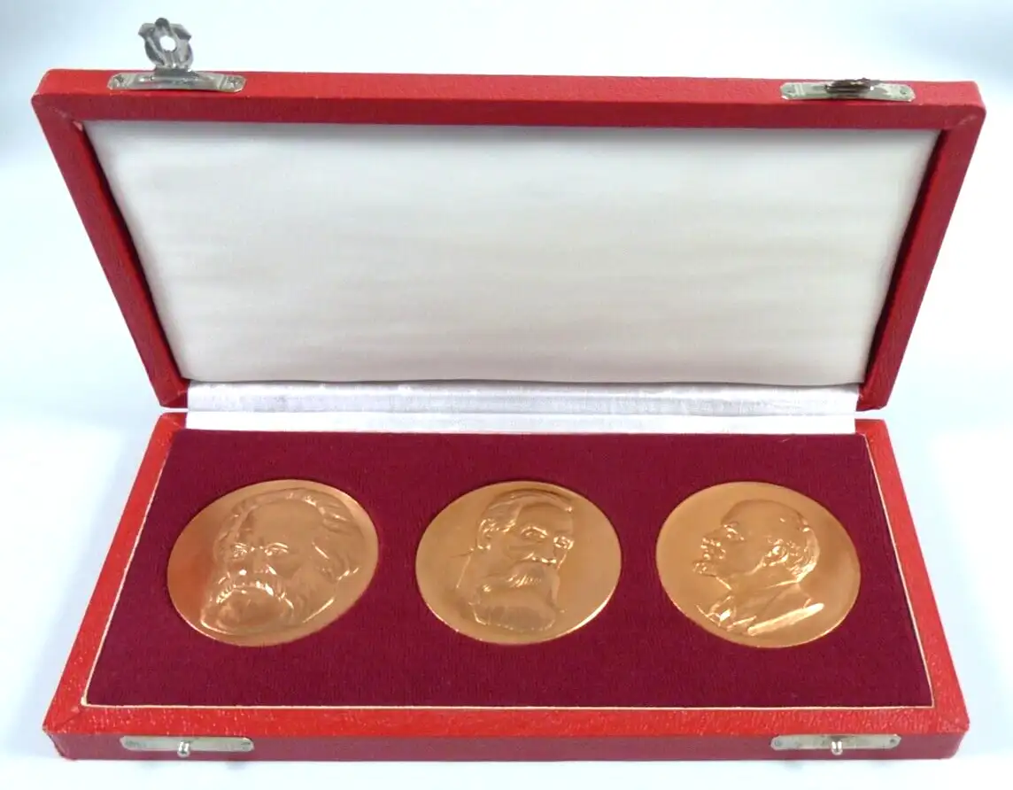 DDR 3 Medaillen Marx, Engels und Lenin in OVPBronze farben