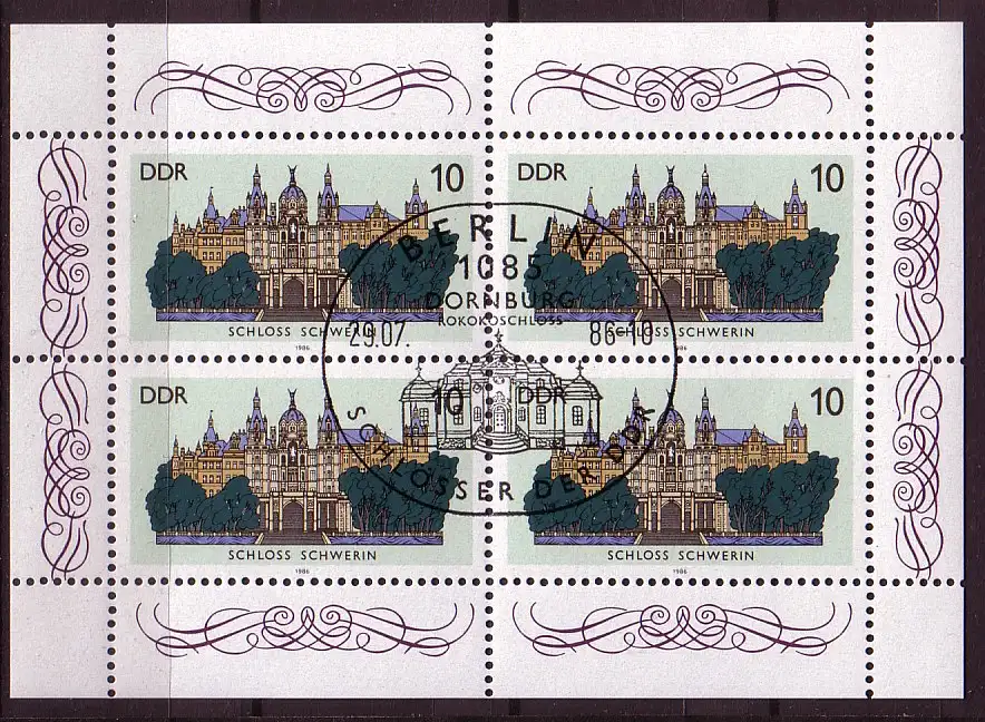 Freie Bezeichnung: DDR 3032 blauer Strich im Zierfeld gestempelt SST (4686A)