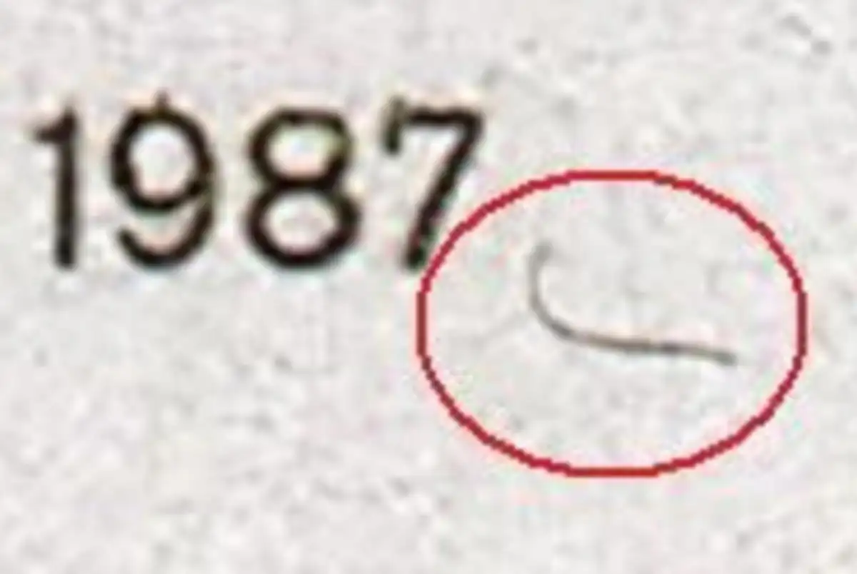 Im ersten Bild sehen Sie eine vergrößterte Beispielabbildung des Fehlers, im zweiten Bild die zu ersteigernde Briefmarke