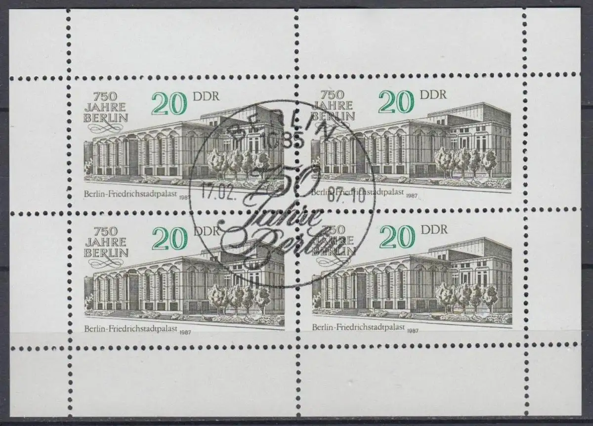 DDR 3078 f2 im Kleinbogen gestempelt SST Plattenfehler Abart (6084AB)