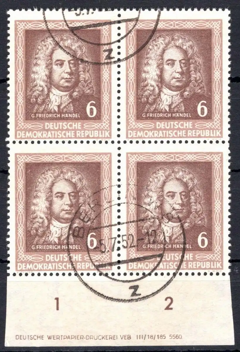 DDR 308 DV gestempelt Druckvermerk, 4er Block #OC625