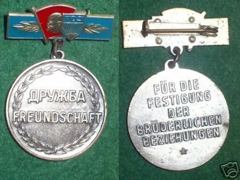 Ehrenmedaille der FDJ "Für die Festigung der brüderlichen Beziehungen zwischen der FDJ und dem Leninschen Kommunistischen Jugendverband der FDJ", Bartel Katalognummer 2361 b, gute Erhaltung siehe Bild,