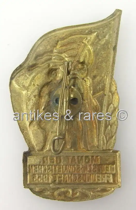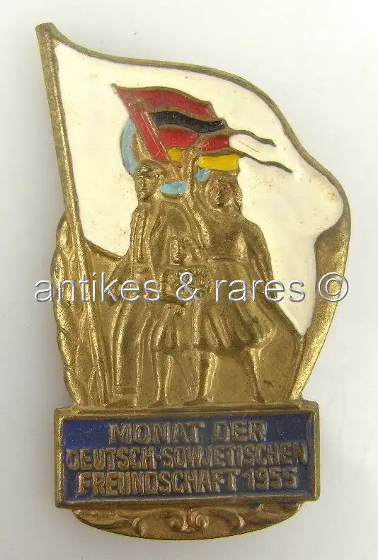 Herzlich Willkommen Gern können Sie auch in meine anderen Auktionen reinschauen. Viel Spaß dabei Sie sehen hier auf ein original altes Abzeichen der DDR (Deutsch Demokratischen Republik). Monat der Deutsch-Sowjetischen Freundschaft 1955 vgl. DDR Spezialkatalog Band X Nr. 255. Das Abzeichen ist im gebrauchten Zustand, mit Gebrauchsspuren. Das Abzeichen ist nicht gereinigt, geputzt oder geschönt worden (siehe Fotos oben). You are bidding on an orignal old badge of the GDR (German Democratic Republic). Month of German-Sowjetichen Friendship 1955 see GDR Special Catalogue Volume X No. 255th The badge is in used condition, with signs of wear. The badge has not been cleaned, trimmed or embellished (see photos above).