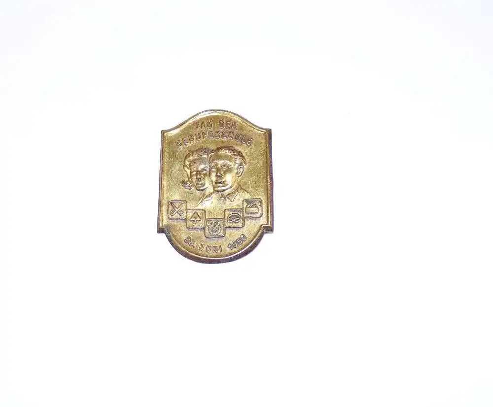 Originales Abzeichen, aus der ehemaligen DDR. Tag der Berufsschule, 28. Juni 1950. Maße: 3 cm x 3,4 cm. Aus Blech. Erhaltung: Farbabriebe, Korrosion und Patina vorhanden, alles weitere siehe bitte Fotos.