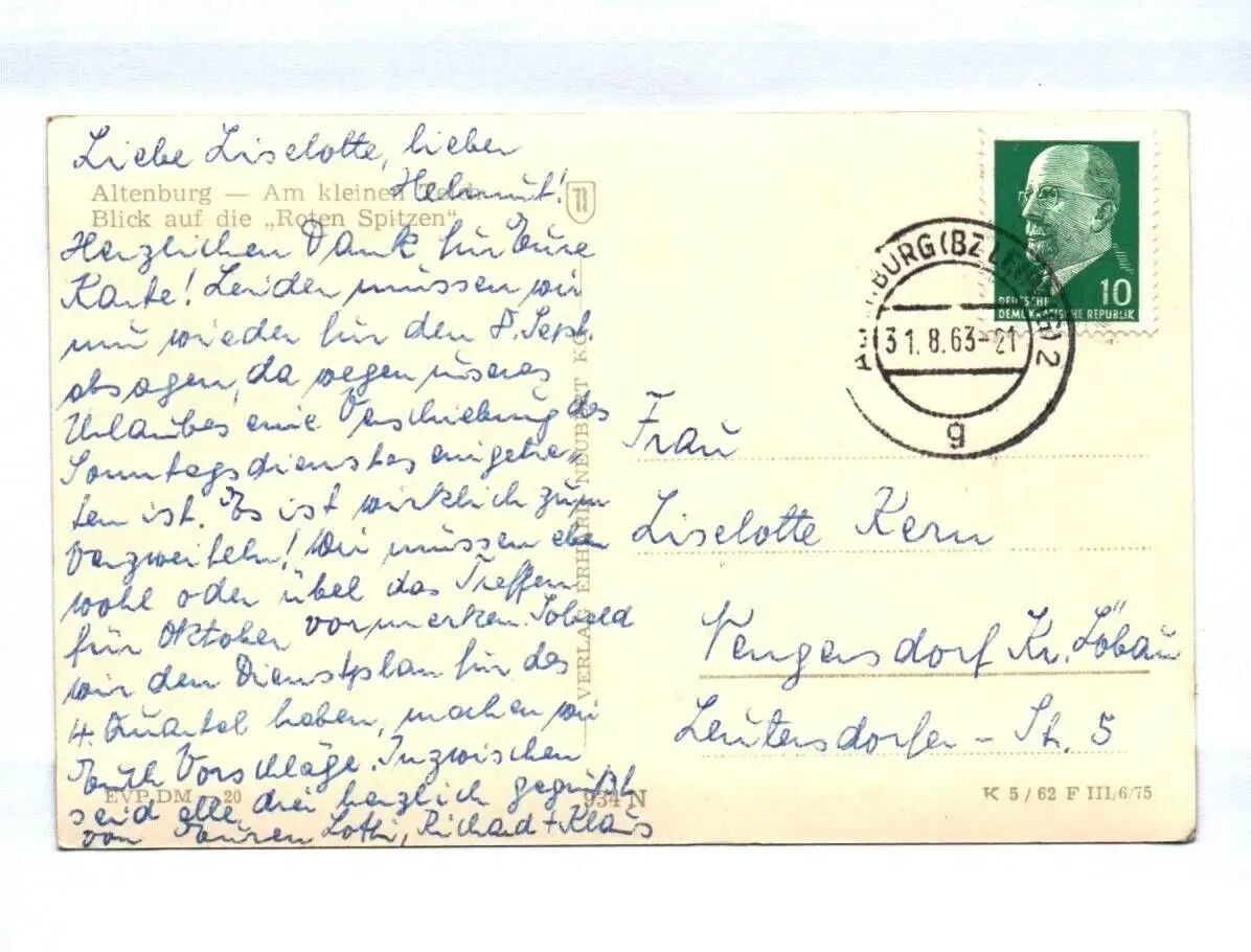 Erhaltung: leicht bestoßen und minimal unsauber, Stempeldruck vorne oben rechts, alles weitere siehe bitte Scans.
