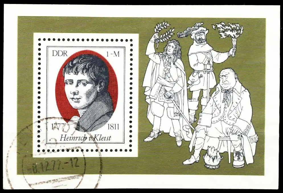 Block-Ausgabe 200. Geburtstag von Heinrich Kleist, aus dem Bedarf, abgelöst, etwas wellig