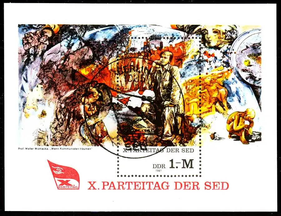 Block-Ausgabe Parteitag der SED, mit Sonderstempel
