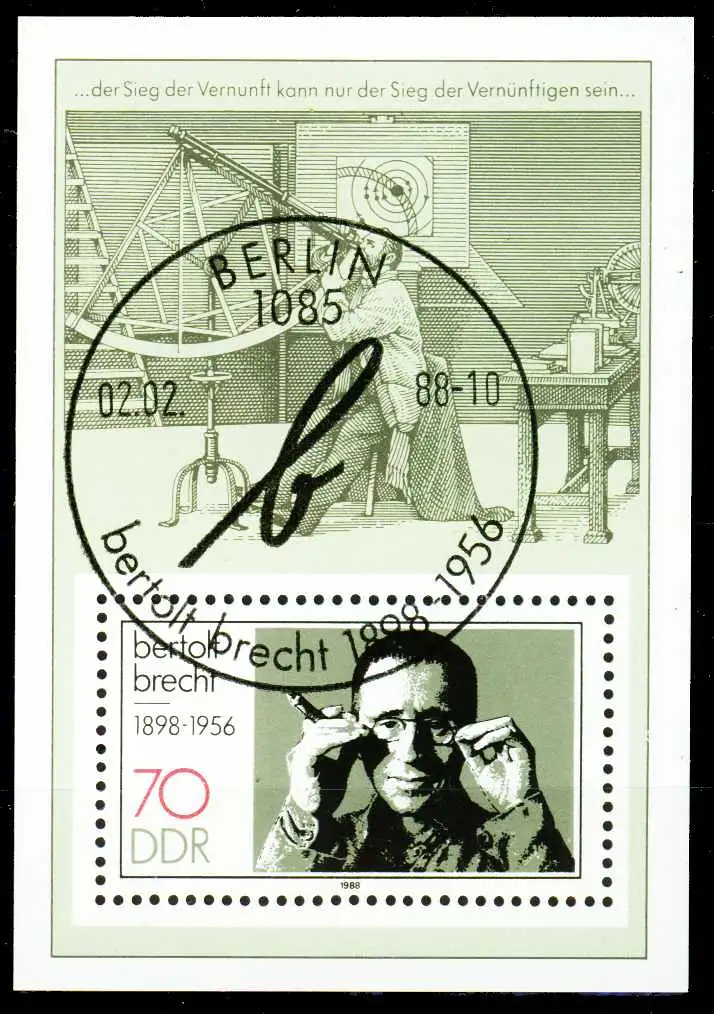 Block-Ausgabe 90. Geburtstag von Bertolt Brecht, mit Sonderstempel