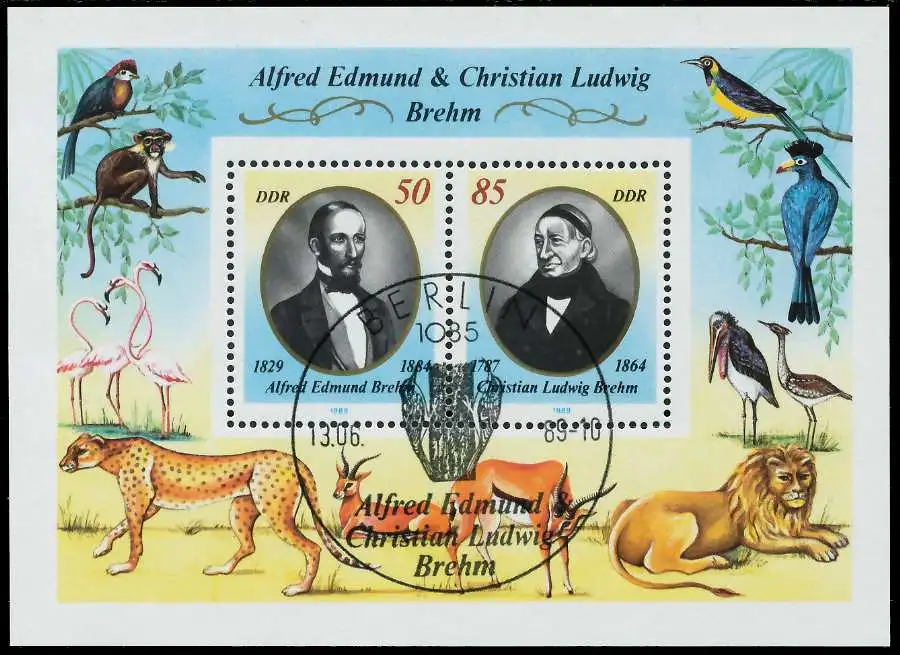 Block-Ausgabe Alfred Edmund und Christian Ludwig Brehm, mit Sonderstempel