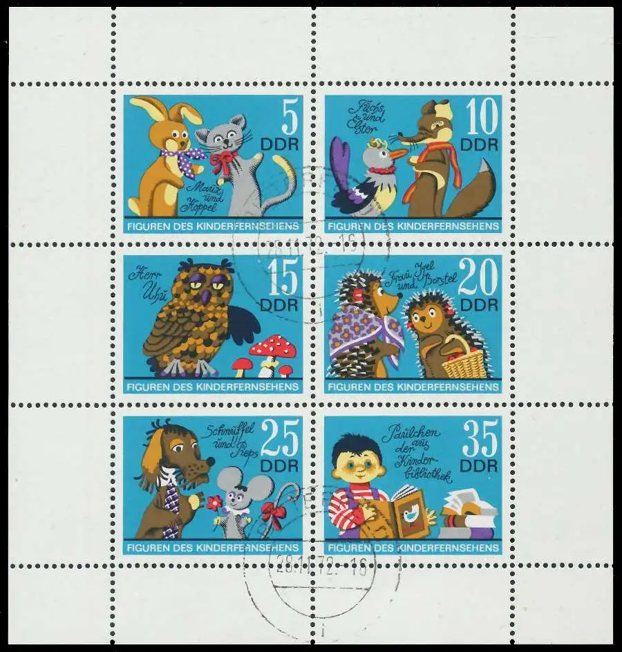 Kleinbogen-Ausgabe Figuren des Kinderfernsehens (MichelNr.: 1807, 1808, 1809, 1810, 1811, 1812)
