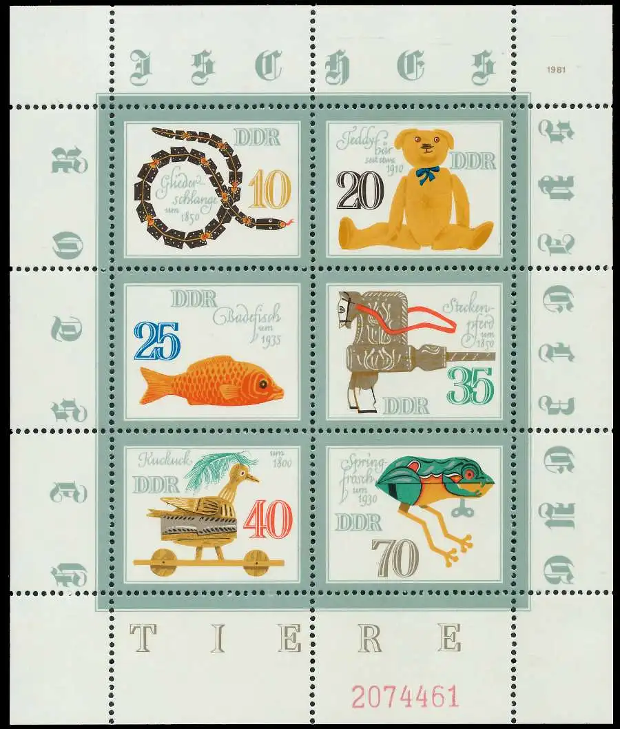 Kleinbogen-Ausgabe Historisches Spielzeug (MichelNr.: 2661, 2662, 2663, 2664, 2665, 2666)