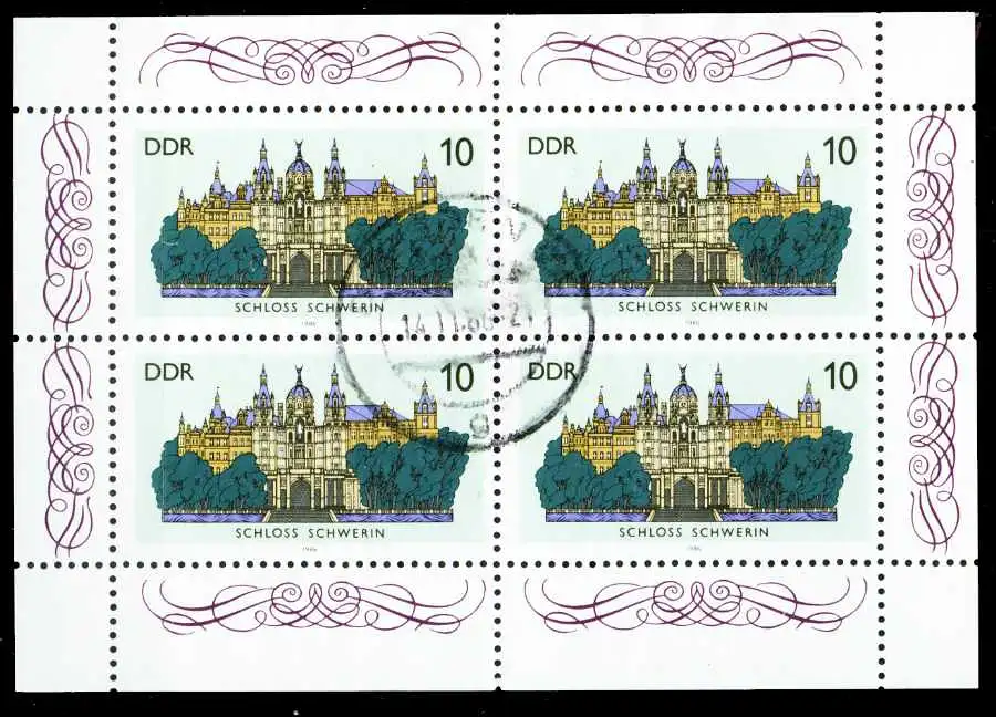 10 Pfg Wert aus der Ausgabe Schlösser, im Kleinbogen zu 4 Marken