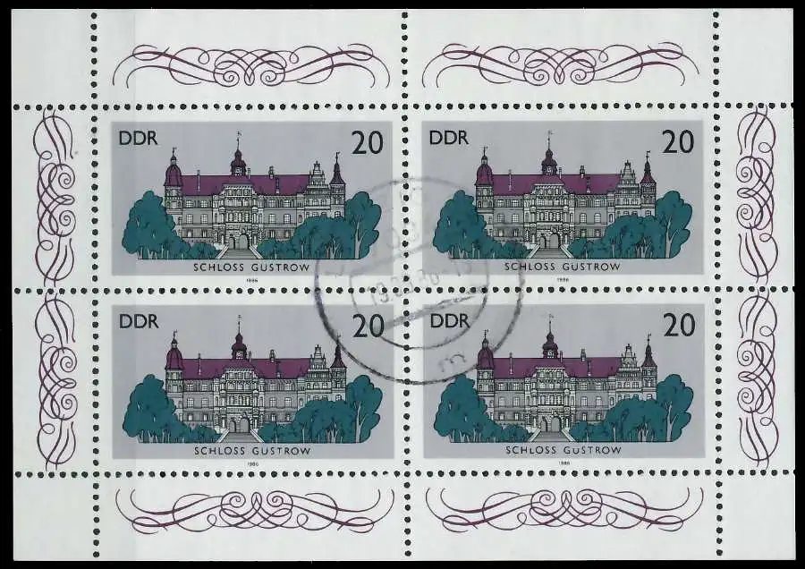20 Pfg Wert aus der Ausgabe Schlösser, im Kleinbogen zu 4 Marken