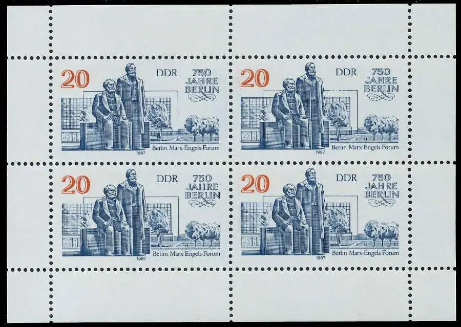 10 Pfg Wert aus der Ausgabe 750 Jahre Berlin, im Kleinbogen zu 4 Marken