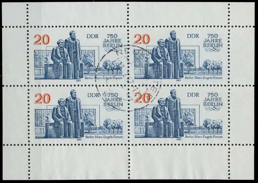 20 Pfg Wert aus der Ausgabe 750 Jahre Berlin, im Kleinbogen zu 4 Marken