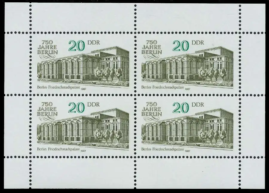 20 Pfg Wert aus der Ausgabe 750 Jahre Berlin, im Kleinbogen zu 4 Marken