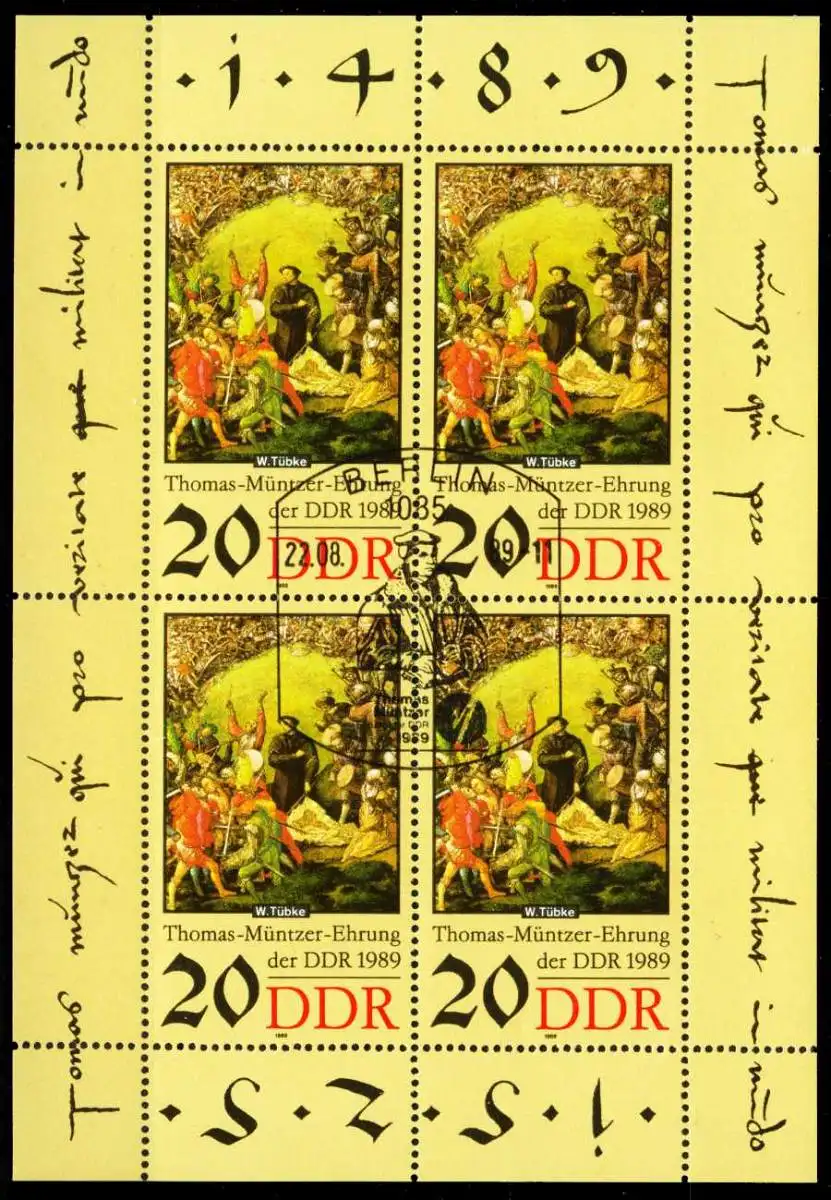 20 Pfg Wert aus der Ausgabe Thomas Müntzer, Kleinbogen mit 4 Marken