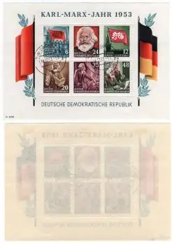 DDR Block 8 A Karl Marx Block gezähnt Tagesstempel o Dresden A24 14.12.1953