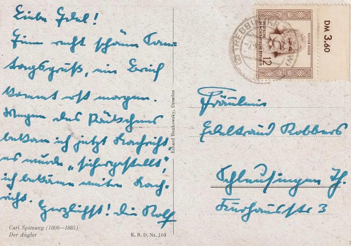 DDR - 1952, Michel 311 mit Oberrand, Victor Hugo, AK - Einzelfrankatur