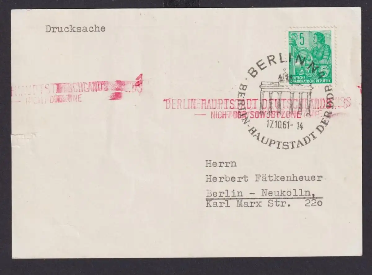 DDR Brief inter. Stempel Brandenburger Tor +roter....nicht der Sowjetzone auf Pk