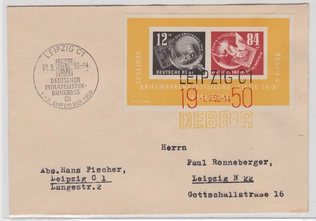 DDR Debria-Block Mi.-Nr. Block 7 auf Brief gel. von Leipzig nach Leipzig 96279