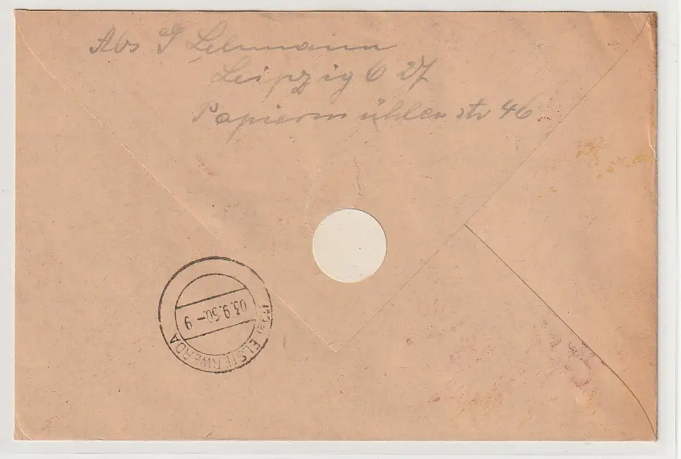 Sonder-R-Zettel und 2 Sonderstempel der DEBRIA. Rücks. Ank.-stempel. Der Umschlag hat links oben eine Aufrauhung, ansonsten ohne Mangel. Michelwert lose gestempelt 160,00 €.