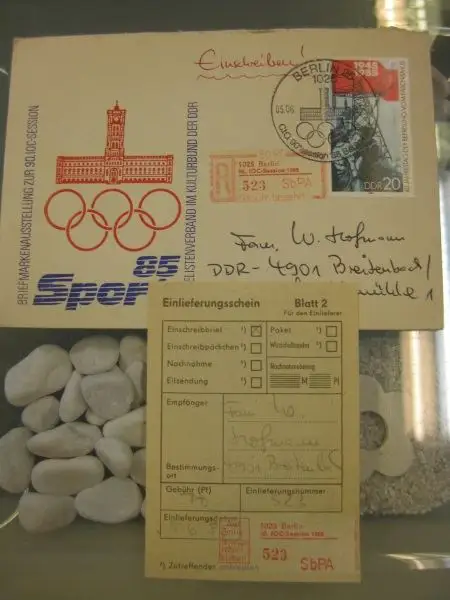 DDR Einschreibemarke für SbPÄ: Berlin 90. IOC Session 1985 auf Brief