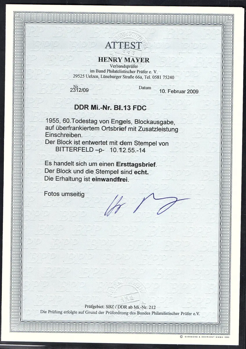 DDR - FDC Mi.-Nr. Block 13 FA.MayerBPP.