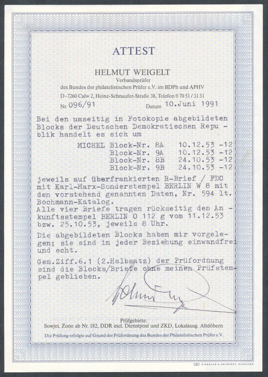 DDR, FDC. Mi.-Nr. Block 8 + 9 A/B FA.weigeltBPP.