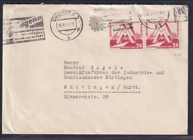DDR., Fernbrief mit MeF. Mi.-Nr. 282