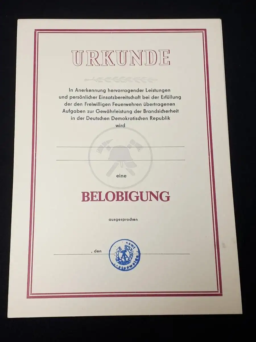 DDR Freiwillige Feuerwehr Urkunde blanko K.U.