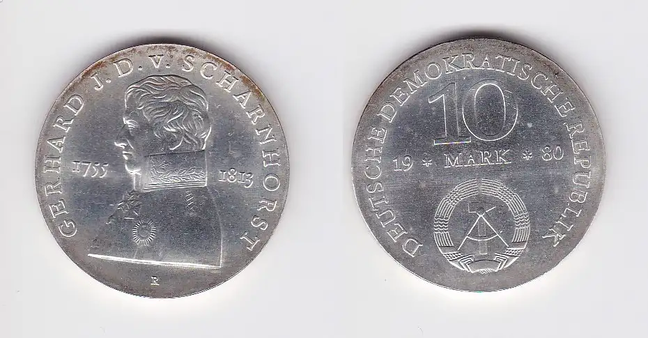 DDR Gedenk Silber Münze 10 Mark Gerhard J.D. v. Scharnhorst 1980 Stgl. (129537)