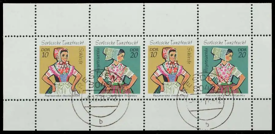 Heftchenblatt Sorbische Tanztrachten, alle Seiten durchgezähnt (MichelNr.: 1723, 1724)